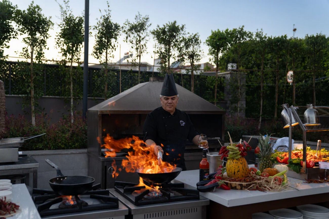 На разположение на гостите е основен ресторант, отворен за закуска, обяд и вечеря, пиде: 12:30 - 16:00 ч. и гьозлеме: 11:00 - 16:00 ч. Предлага се диетично и вегетарианско меню. 2 а`ла карт ресторанта: Karına A'la Carte и Terrace Grace A'la Carte. Освежаващи напитки се предлагат в 4 бара, единият от които работи денонощно, има и кафене.