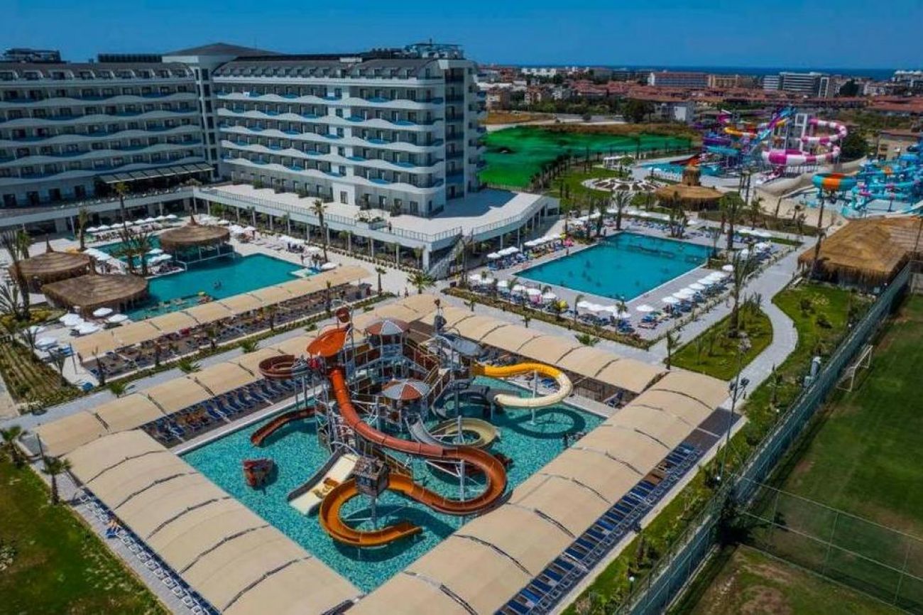 Частнен пясъчен плаж на около 800 м от хотела, от другата страна на пътя. Има безплатен транспорт до плажа на всеки 15 минути. Плажен бар и ресторант за леки закуски. Открити басейни, вкл. басейн за възрастни (18+), комплекс Детски свят и басейн с пързалки. Шезлонги, чадъри, плажни кърпи на при басейна и на плажа са безплатни. Пързалките в аквапарка са отворени между 15 април и 15 октомври. Извън тези дати, те могат да варират в зависимост от метеорологичните условия.