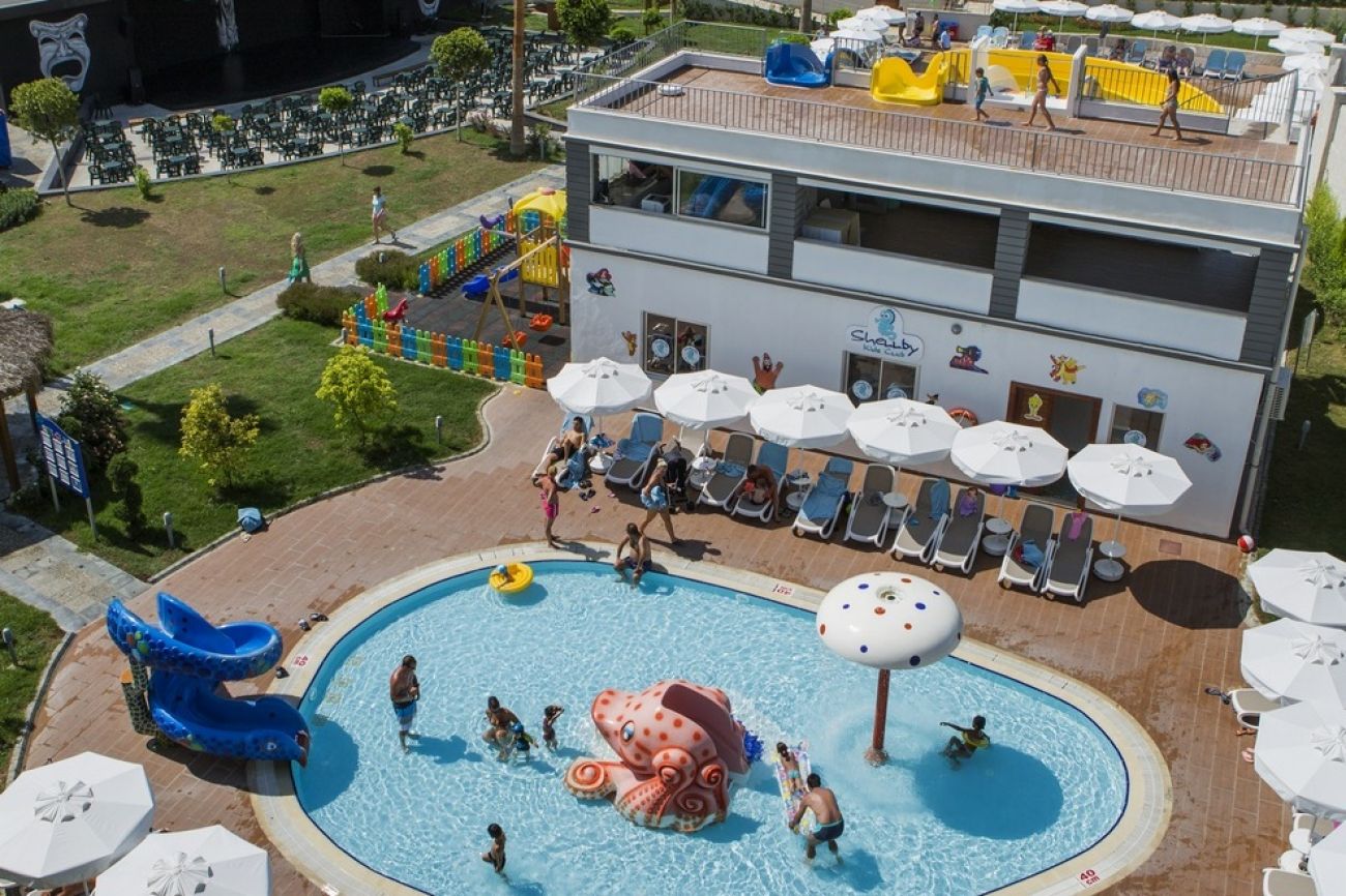 Собствен пясъчен плаж, дълъг 50 м. 1 външен басейн с прясна вода (неотопляем), 590 кв.м. 1 вътрешен басейн със сладка вода, 120 кв.м (отопляем от 11.01 до 31.03). 3 водни пързалки, работно време 11:00-12:00 ч / 14:00-15:00 ч. Откритите басейни и пързалки работят в зависимост от метеорологичните условия.