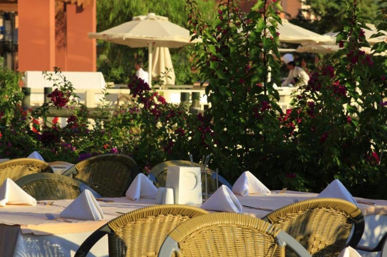 Хотелът има основен ресторант, предлагащ богато меню на бюфет, а`ла карт ресторанти, където можете да опитате международна кухня, барове, където можете да опитате цветни напитки и снек ресторант с вкусни закуски. В а`ла карт ресторантите Saray (турска кухня), Spice (азиатска кухня) и Prima Cuccina (италианска кухня) можете да опитате изискани вкусове, приготвени от майстор готвачи между 19.00 и 21.00 часа.