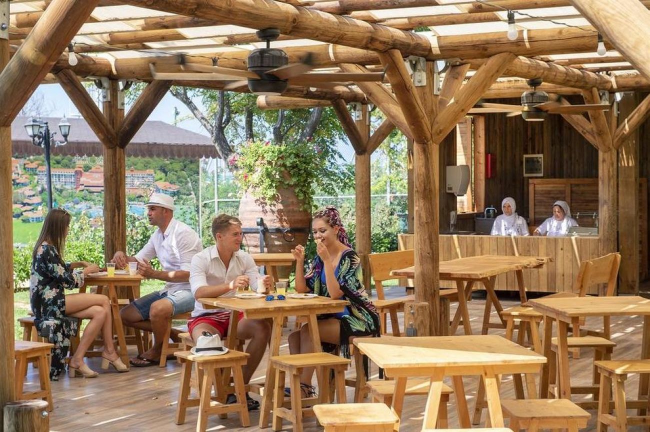 Хотелът има основен ресторант (има диетична хранадиетично меню), 3 ресторанти a la carte (турски, италиански, рибен, с предварително записване, платено). В 4-те бара (един от тях работи 24 часа) се поднасят разнообразни напитки.
